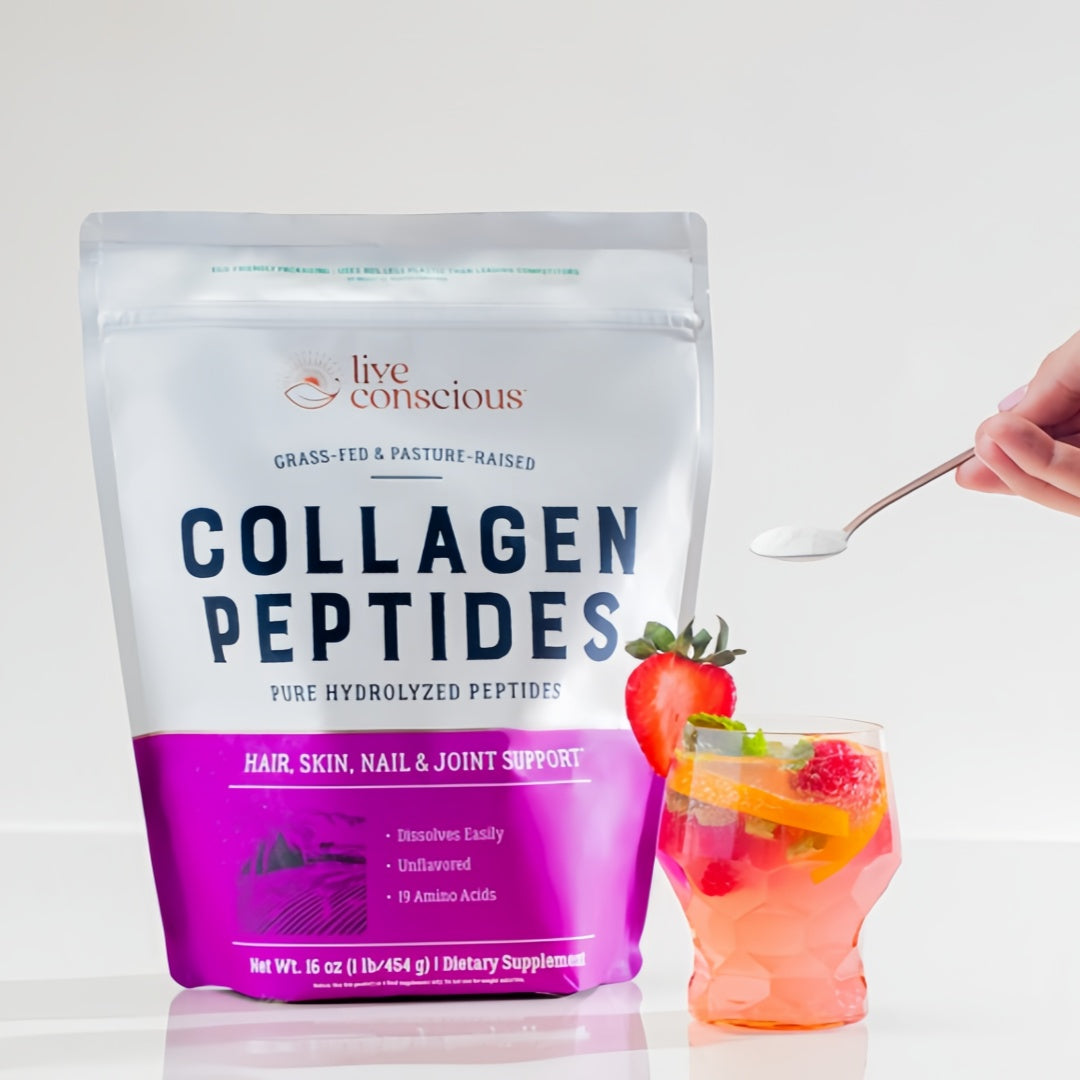 We never add unnecessary fillers or additives to our products, and our Collagen Peptides are no exception. Live Conscious® Collagen Peptides are 100% Bovine Collagen, Types I & III. That’s it! Nothing else added. Ever. This product is always 100% manufactured here in the U.S. with globally-sourced ingredients, is 3rd party tested for U.S. standards, compliance, and quality control, and must always be awarded a passing certificate of analysis before being put into circulation. It is always tested to ensure there are no significant microorganisms or molds.