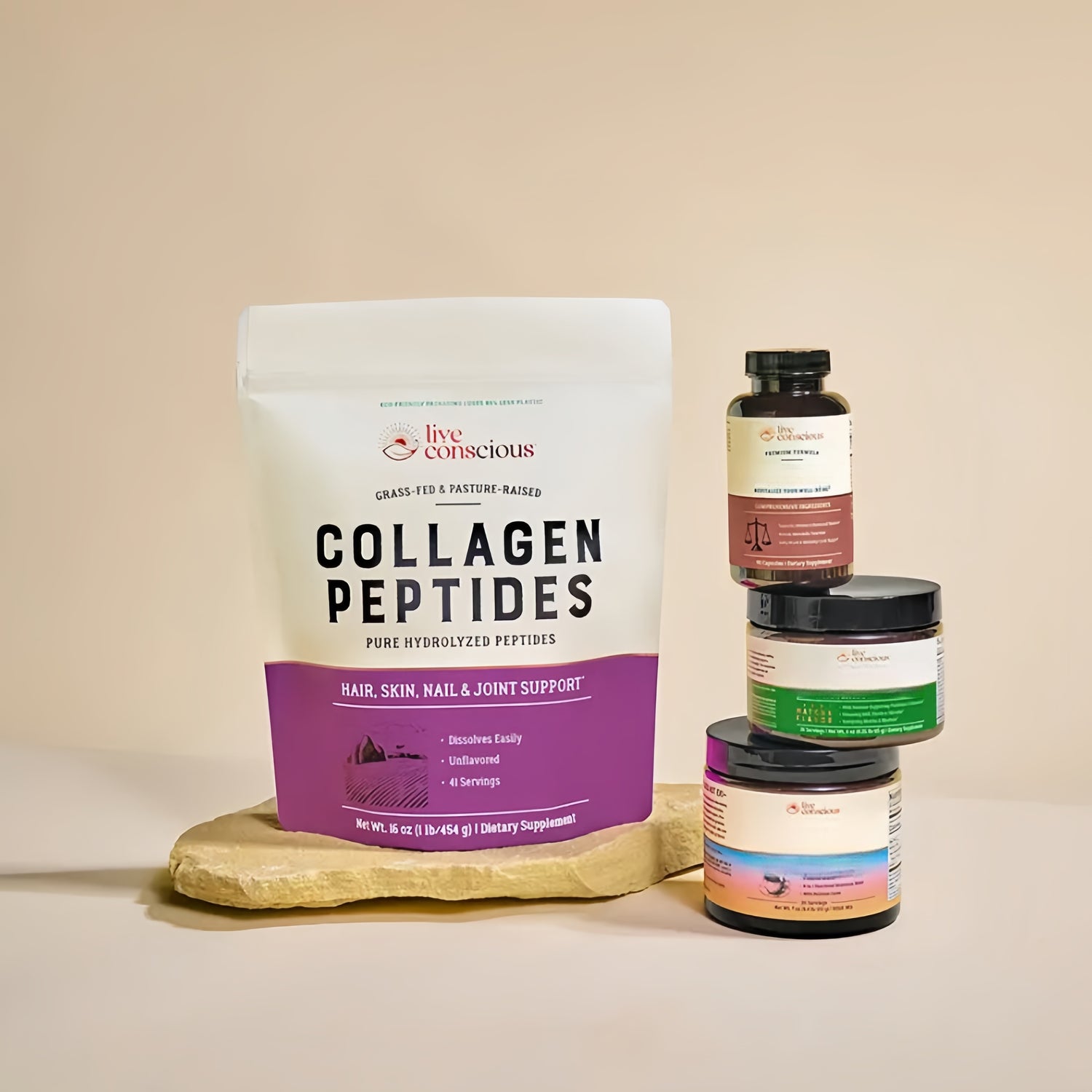 At Live Conscious®, we feel passionate about positively impacting those we serve, whether through our sustainably sourced ingredients or additional initiatives such as eco-friendly packaging. We’ve begun to do our part in reducing our environmental impact by transitioning from plastic tubs to more sustainable bags and stripping our bottles of their boxes. You directly contribute to an 86% plastic reduction by supporting our intention.